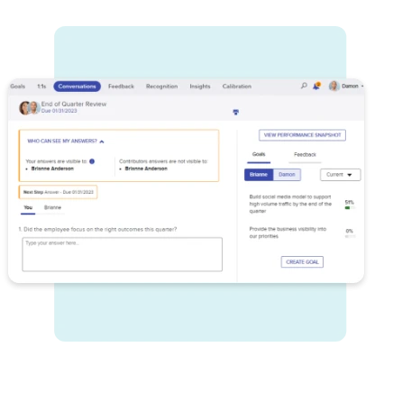Ready access to comprehensive data and notes on goal progress, performance and development conversations, peer feedback, and recognition enables managers to accurately and fairly assess employee performance.