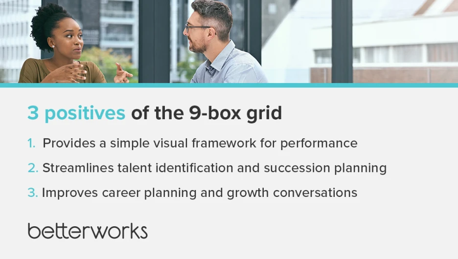 Is the 9-box talent grid still relevant? The primary drawbacks of the 9-box model are a matter of perspective. “It happens when it's a ‘look back’ process vs a ‘look forward’ process,” says Caitlin Collins, program strategy director at Betterworks.