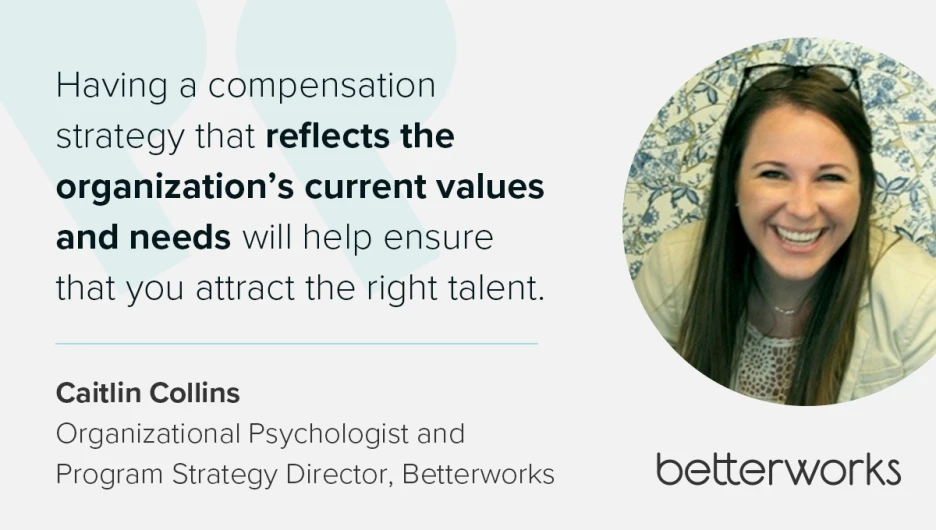 “Having a compensation strategy that reflects the organization’s current values and needs will help ensure that you attract the right talent,” Caitlin says.