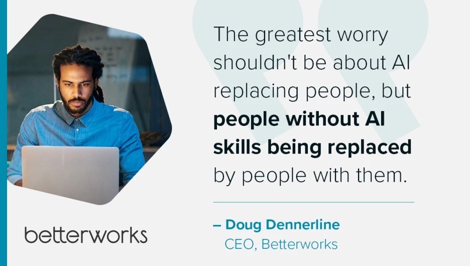 More than half (54%) of employees are already using AI, Betterworks research found — and many are doing so without company approval. HR needs to get ahead of this trend for numerous reasons, including to avoid inadvertent exposure of company information to public-facing AI tools, Doug said. HR can be a leader — shaping how the organization uses AI to support employees, managers, and business goals.
