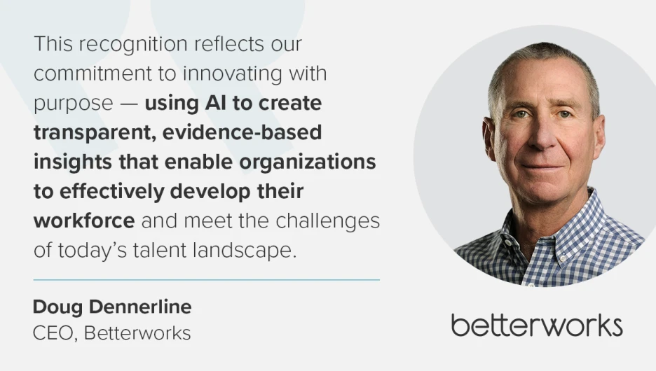 "We are incredibly honored to receive the 'Top HR Products of 2024' award for our Talent Profiles," says Doug Dennerline, CEO of Betterworks. ”This recognition reflects our commitment to innovating with purpose — using AI to create transparent, evidence-based insights that enable organizations to effectively develop their workforce and meet the challenges of today’s talent landscape.”