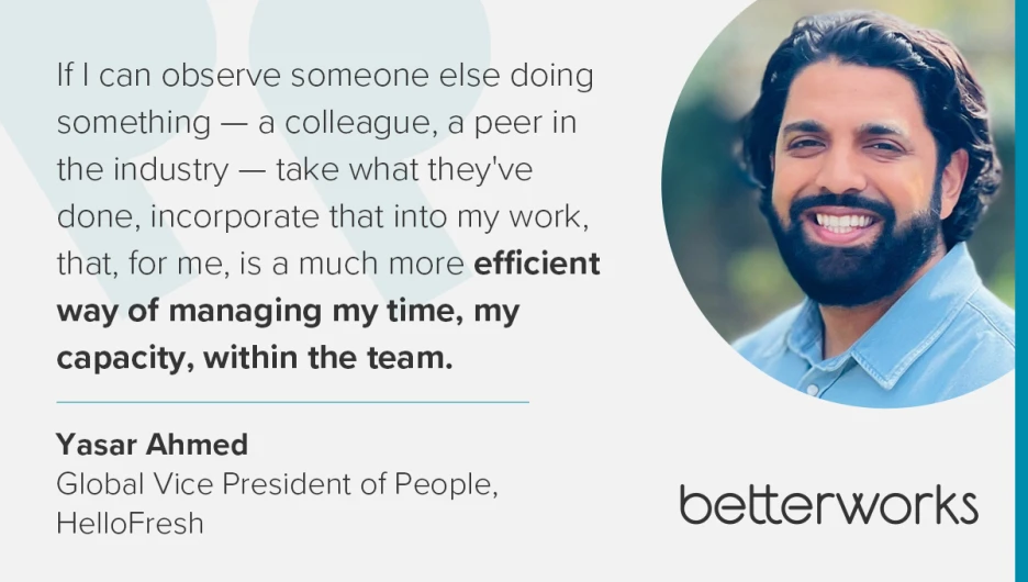 Yasar and his team, for example, recognize the potential rewards of incorporating AI into HR processes, but they don’t consider themselves to be “early adopters.” Instead, Yasar has embraced the role of “fast follower,” which has allowed him to learn from the experiences of others. “If I can observe someone else doing something — a colleague, a peer in the industry — take what they've done, incorporate that into my work,” he said, “that, for me, is a much more efficient way of managing my time, my capacity, within the team.”