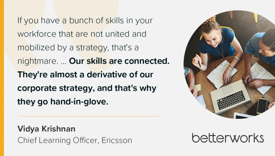 At Ericsson, managing skills as a static asset doesn’t cut it. For Vidya, a skills strategy is only as powerful as its connection to business execution.