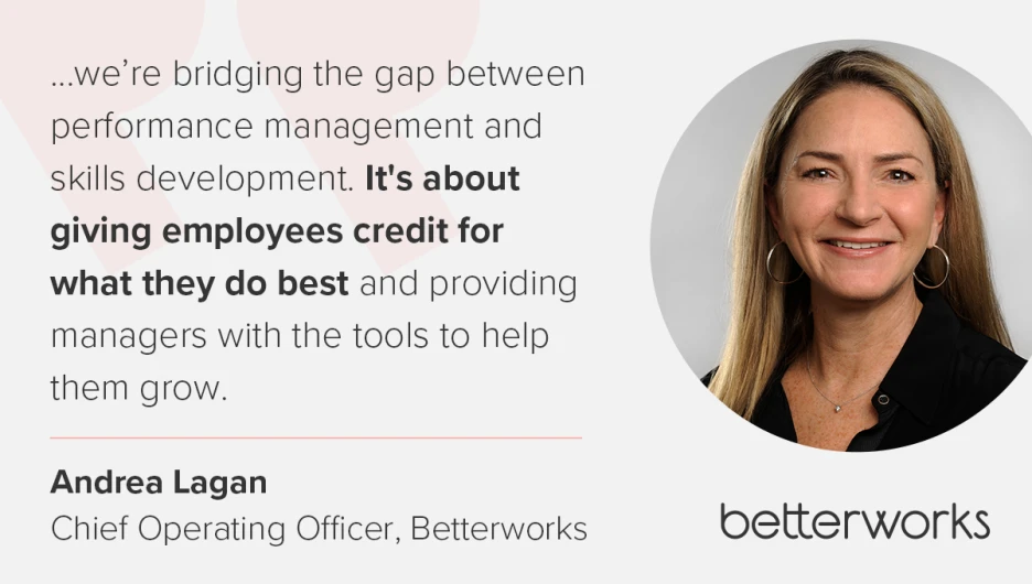 As Betterworks Chief Operating Officer Andrea Lagan explained, "With this release, we’re bridging the gap between performance management and skills development. It's about giving employees credit for what they do best and providing managers with the tools to help them grow."