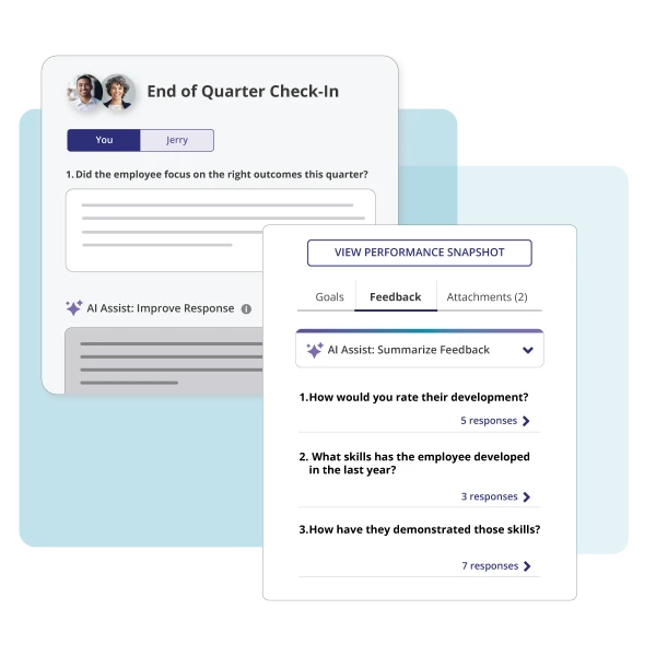 Empower your people with employee feedback software that turns everyday check-ins into opportunities for growth. When review season arrives, you have the full picture, not faded memories.