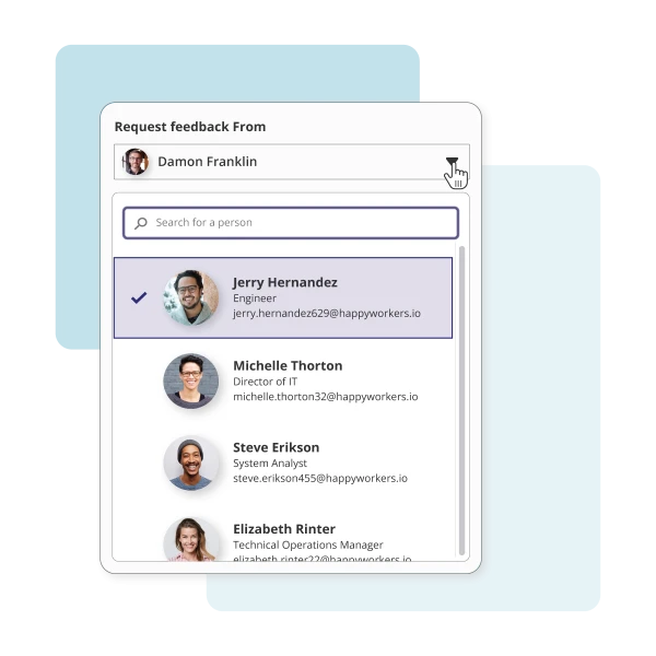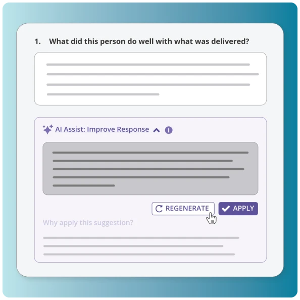 Employees and managers can request input after a project, milestone, or meeting without waiting for review season. Customizable templates make asking fast, consistent, and bias-resistant, supporting employee feedback and recognition. Smart templates and AI-assisted suggestions help managers ask the right questions, spot gaps, and coach more effectively at key moments.